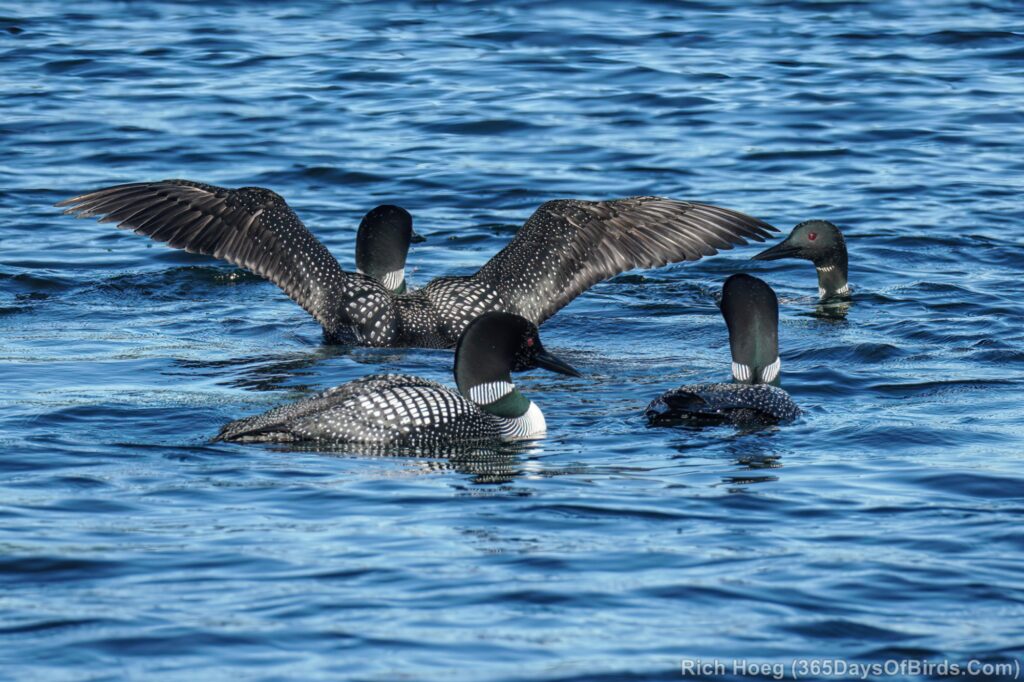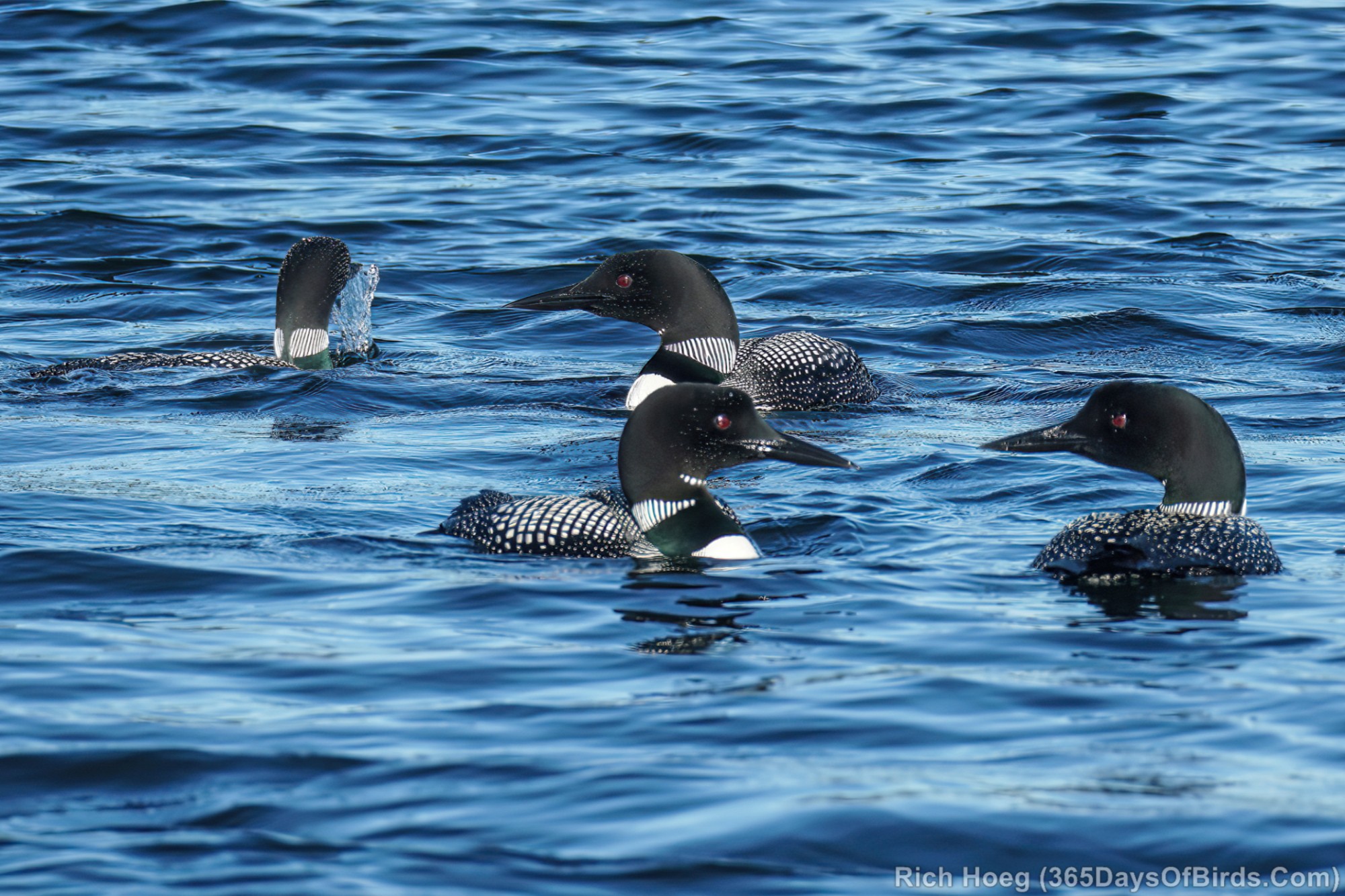 My lake in northern Minnesota is quite deep, and the common loons often meet near the deeper spots and hunt together to try and catch ciscoes (whitefish). Such was the case this morning … final day of June. The loon wolfpack let me float to within ten yards … ignoring me as they would work together to obtain their breakfast (video link for email subscribers)