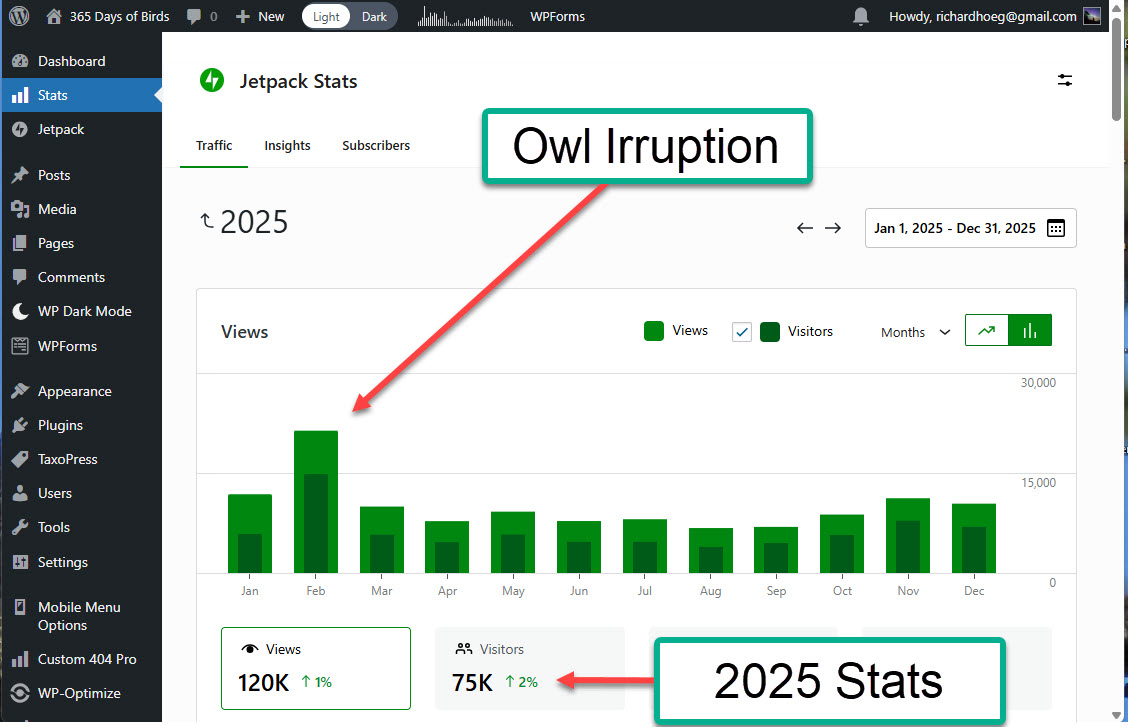 If you read this far, here are my stats for the year just completed, 2025. This was NOT part of the Goggle Gemini critique. My readers in 2025 combined for 120k page views over 75K visits.