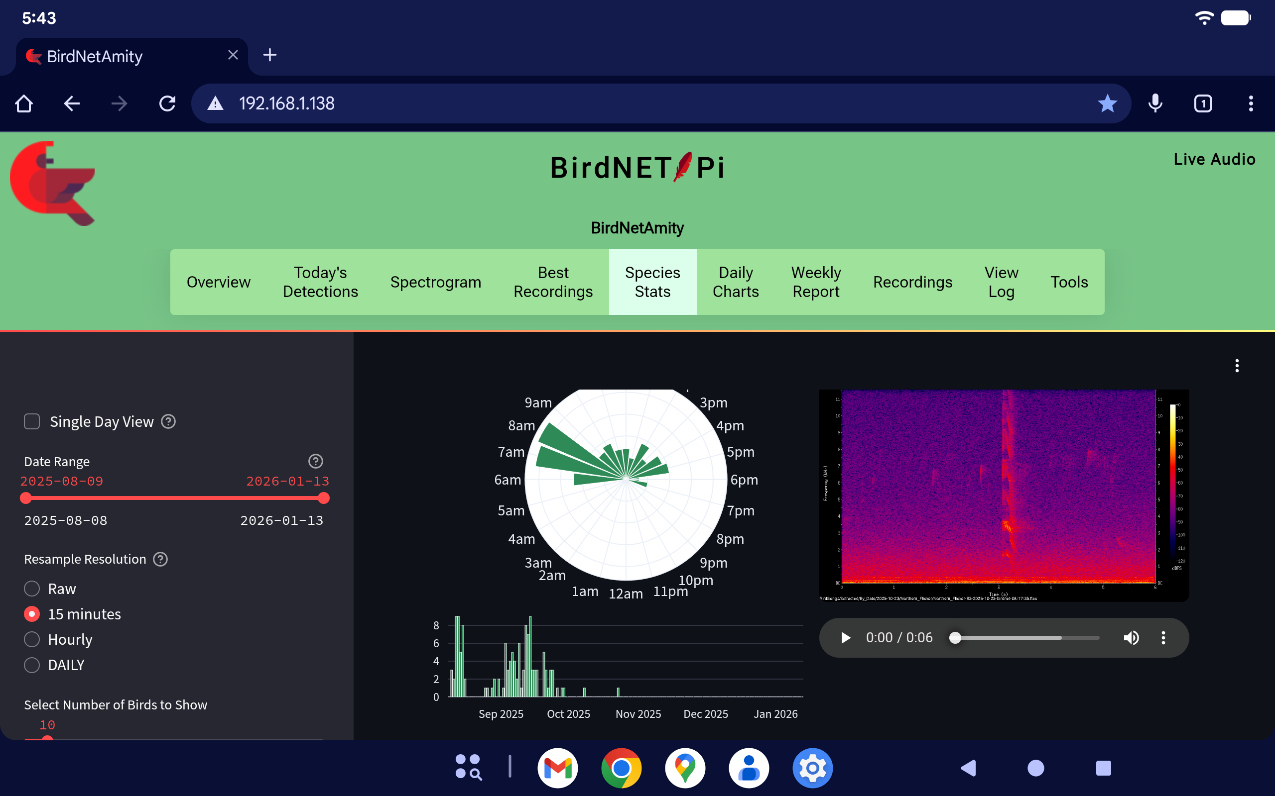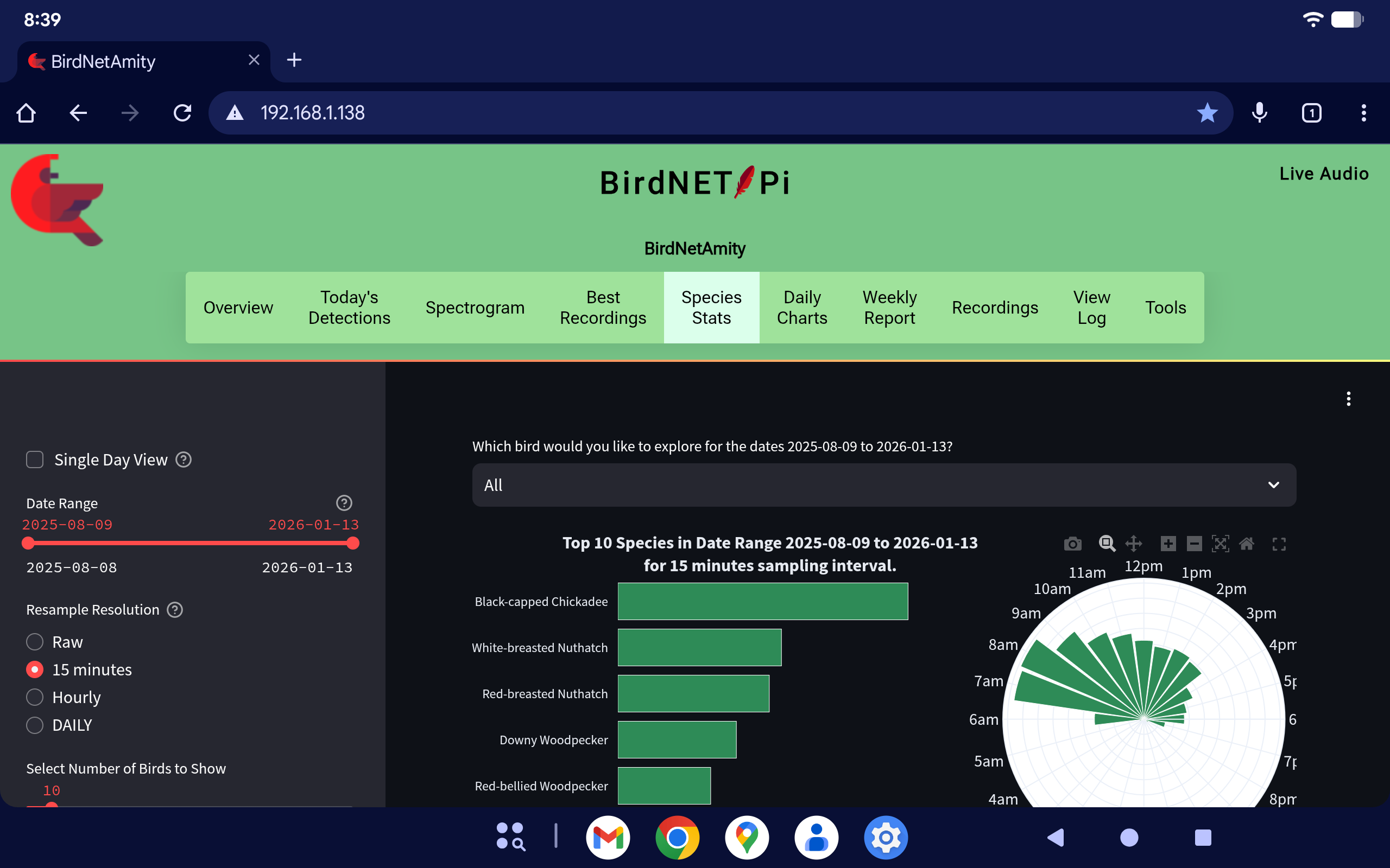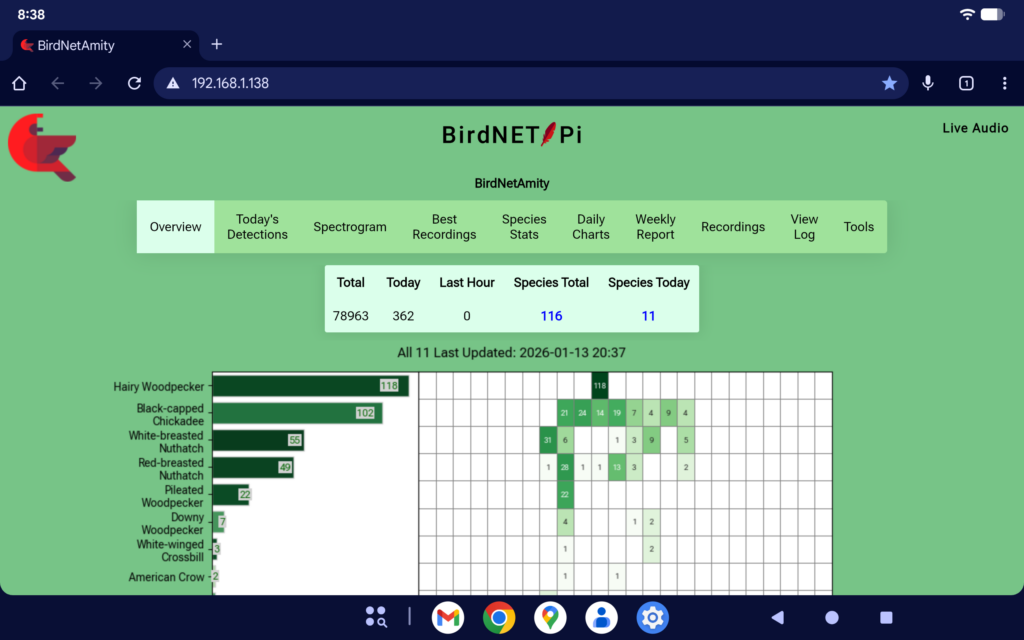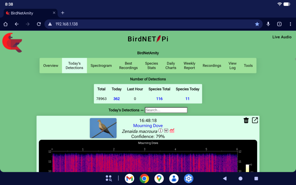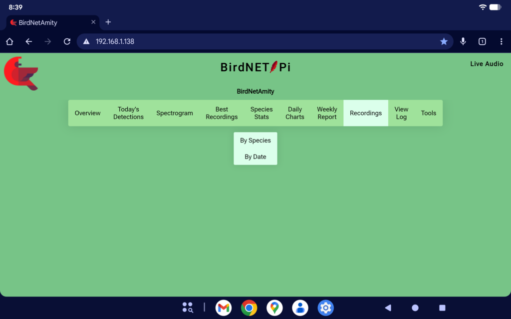 - On your OWN local network, via your browser you may utilize the extensive menu options given later in this post. Learn more about BirdNET-Pi.