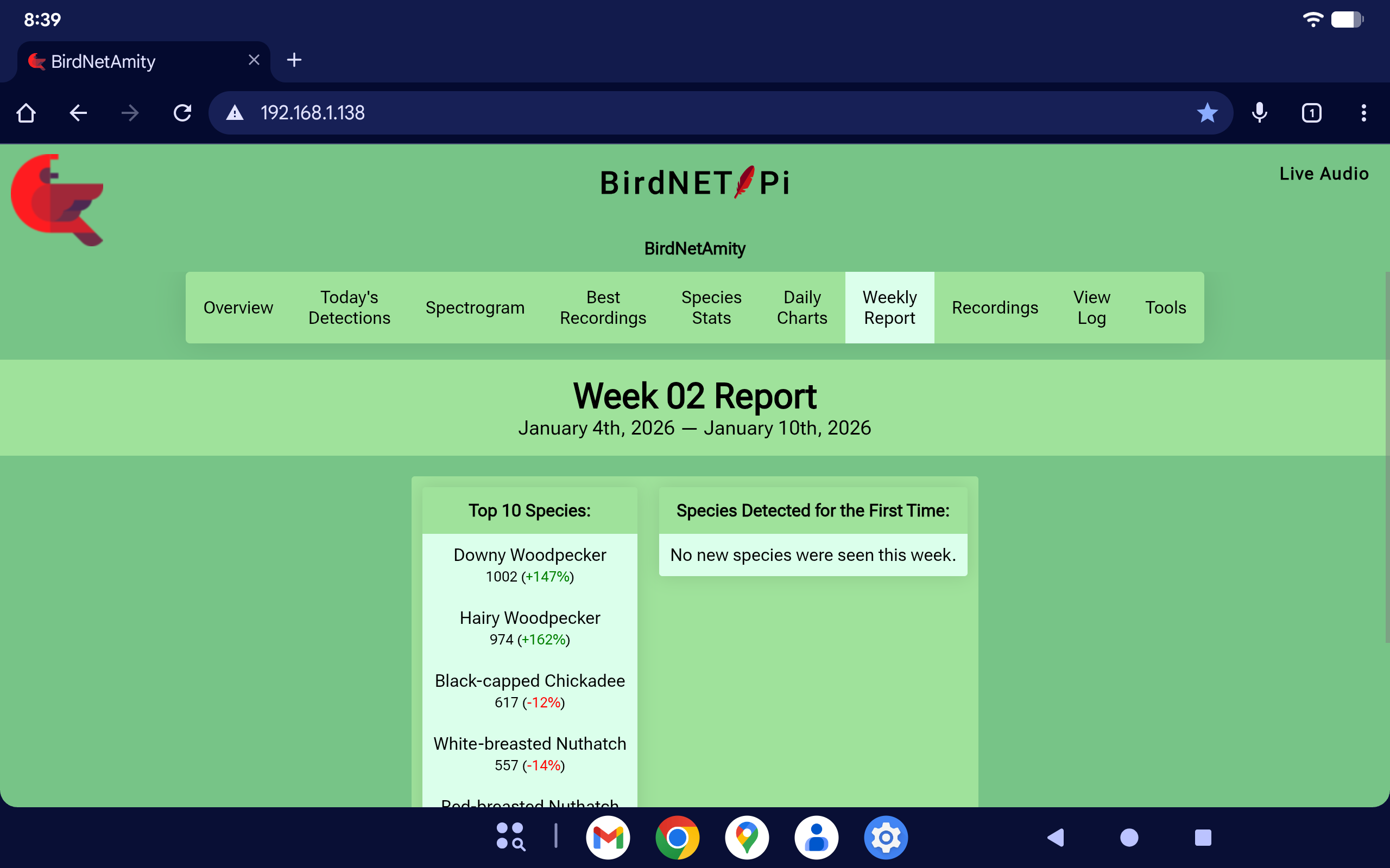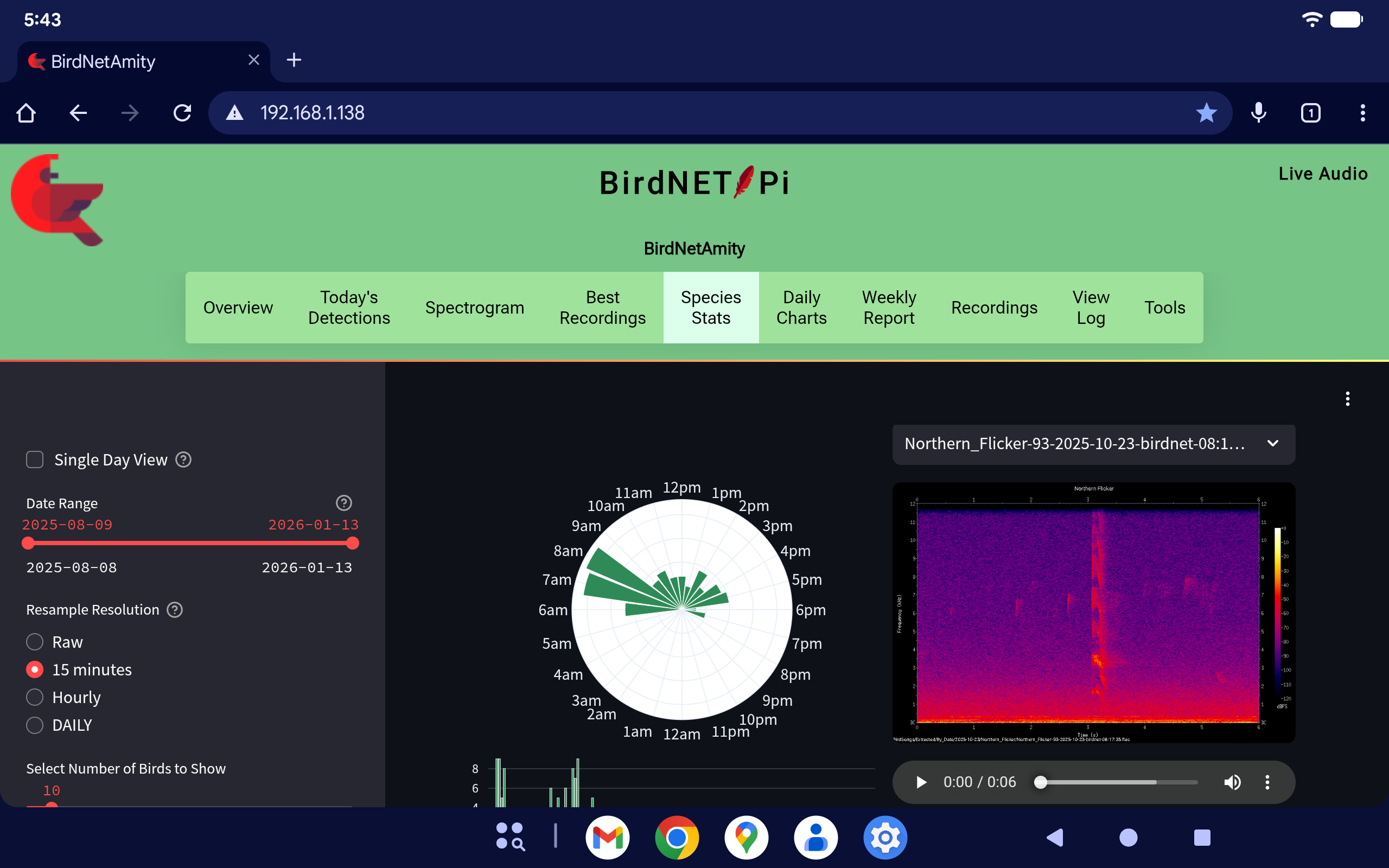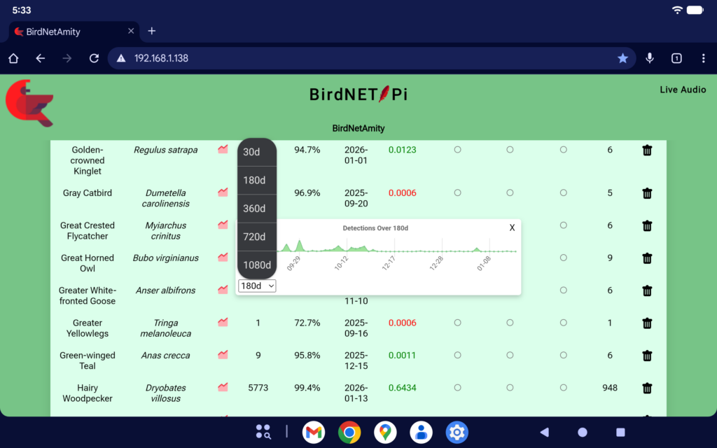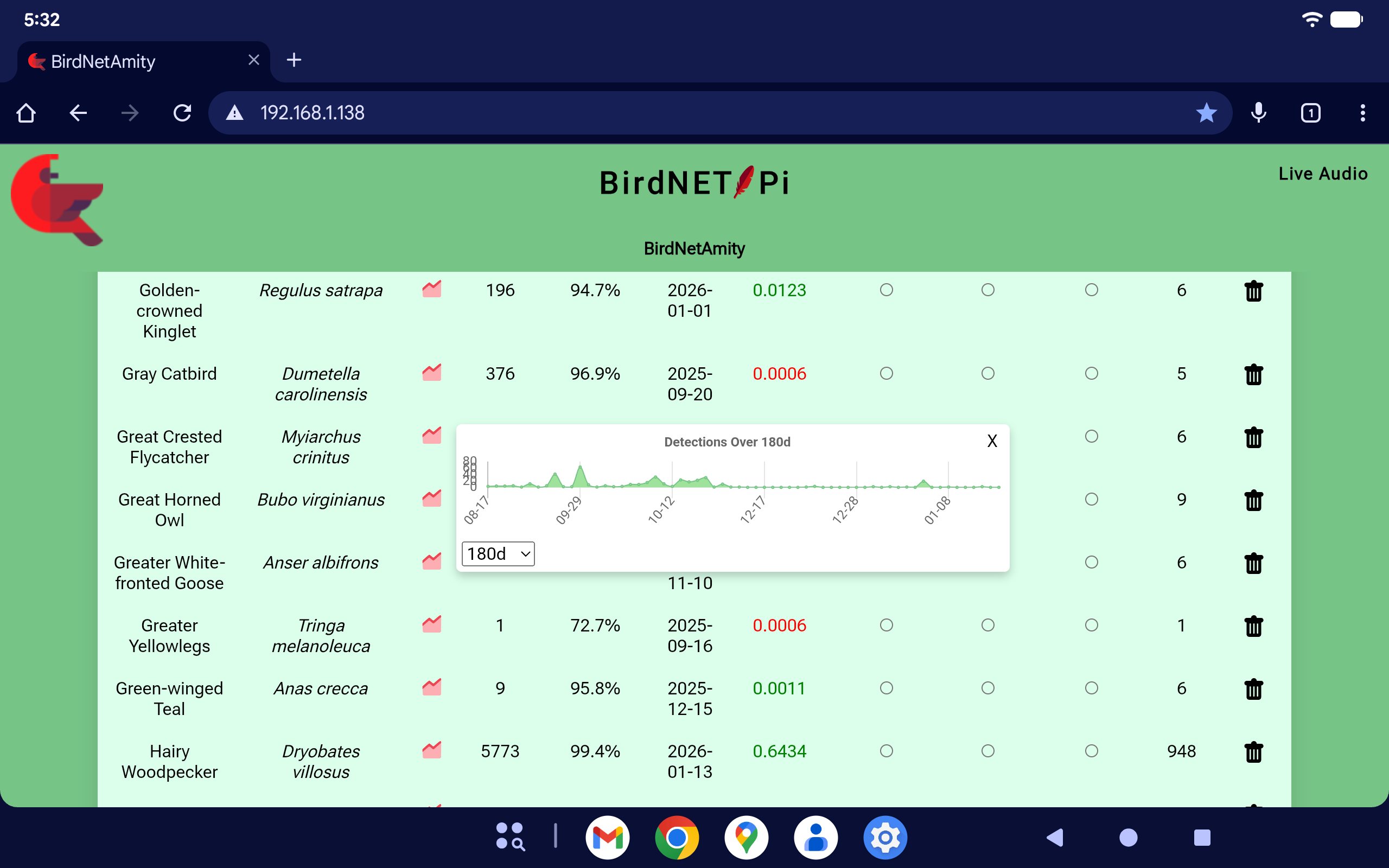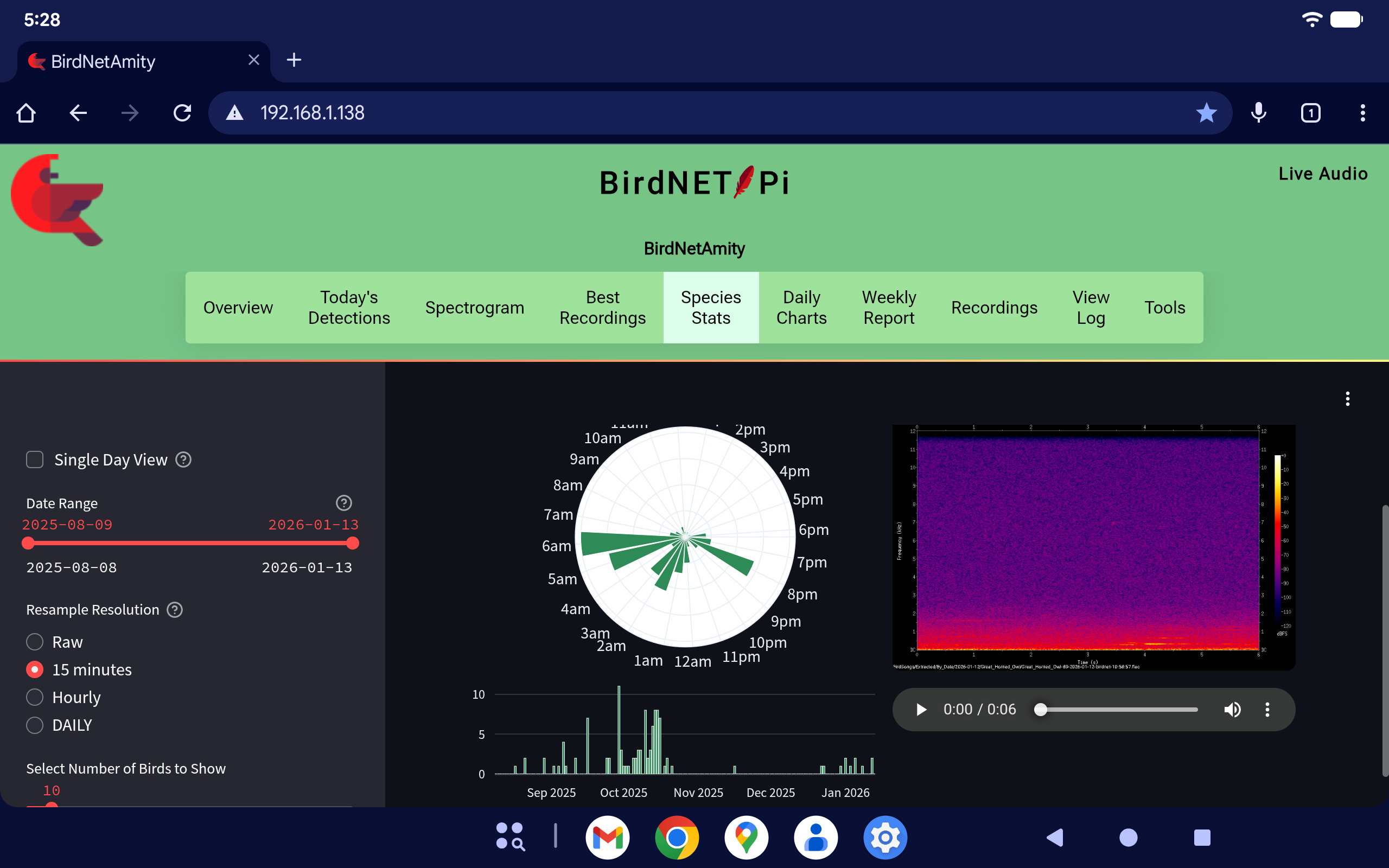 - On your OWN local network, via your browser you may utilize the extensive menu options given later in this post. Learn more about BirdNET-Pi.