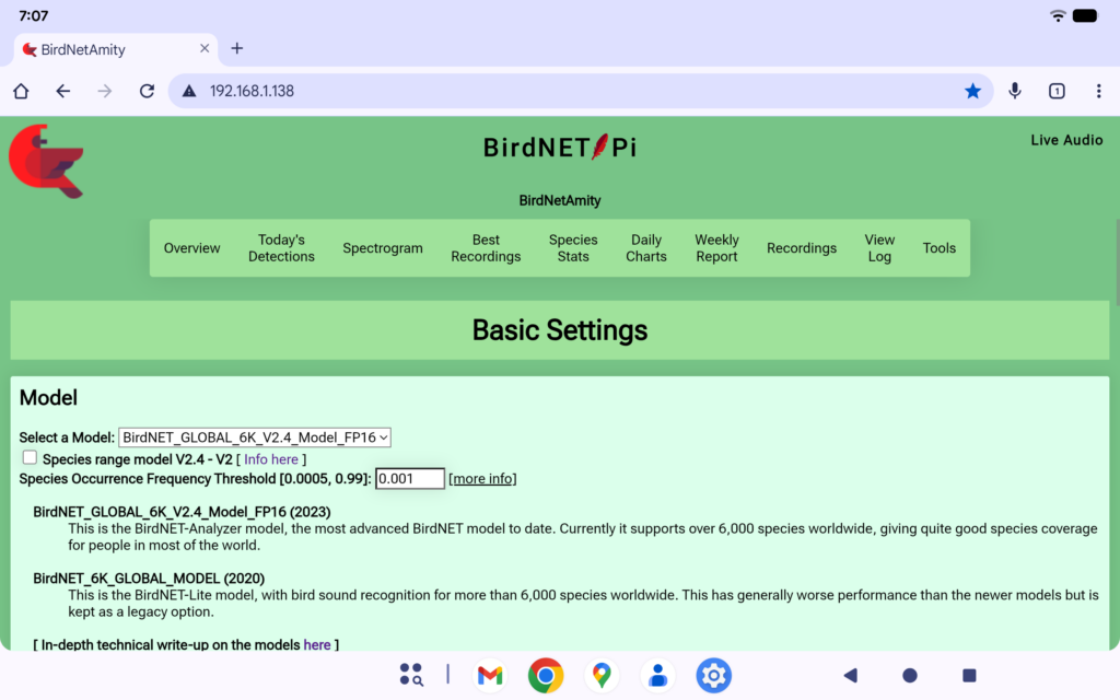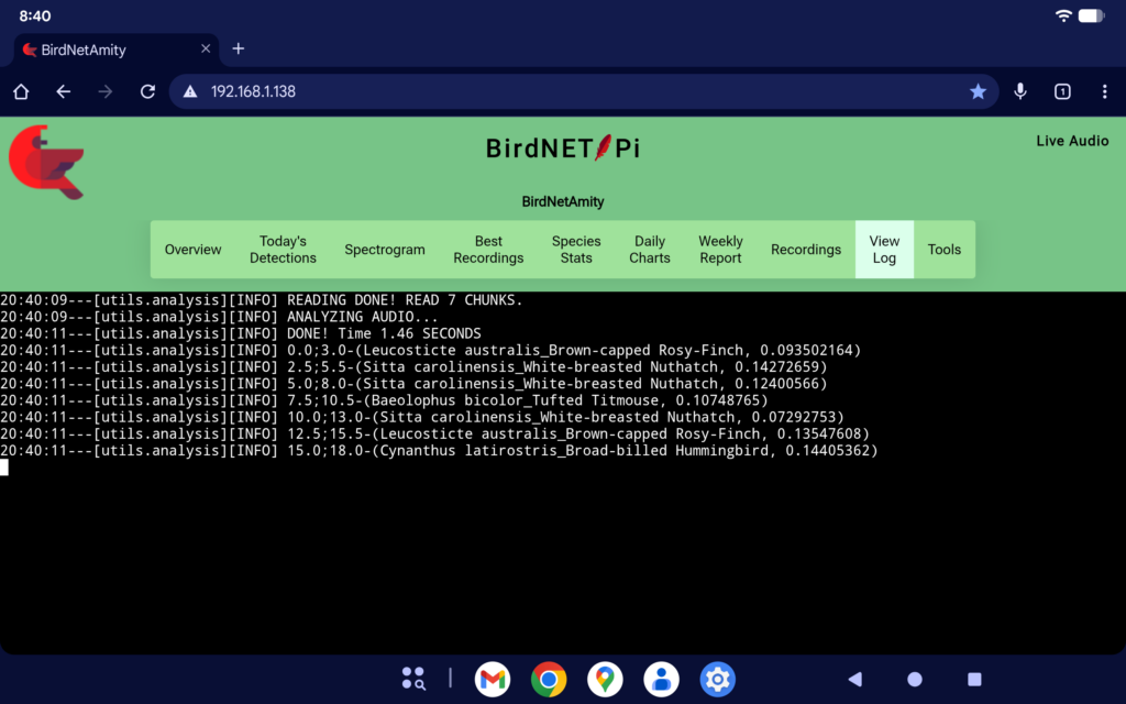 Thanks to your inspiration I’ve built two of these units, one for our RV… we are mostly stationary in winter so no big deal to adjust the location for birdweather, and one for our friend in NE Mpls… unfortunately, there are not many birds there so we may have it moved to her father’s place. (caught a crow and a swan flying overhead in NE). But what I wanted to mention is that I needed a way to maintain the unit for our friend so I set up two methods that are not bad. The easy one is to use Raspberry Connect and connect the remote Pi to my broswer… mainly I can look at the shell and SH in if I have a linux thing to do… but MUCH more useful is to set up Tailscale VPN on both my computer and the remote Pi. This way I can look at the display and statistics and make adjustments to the tool menu. I will need both of these functions for when we move the remote bird-Pi to her father’s place. (I also have promised a build for our sister-in-law in Ely). Keep up the good work.