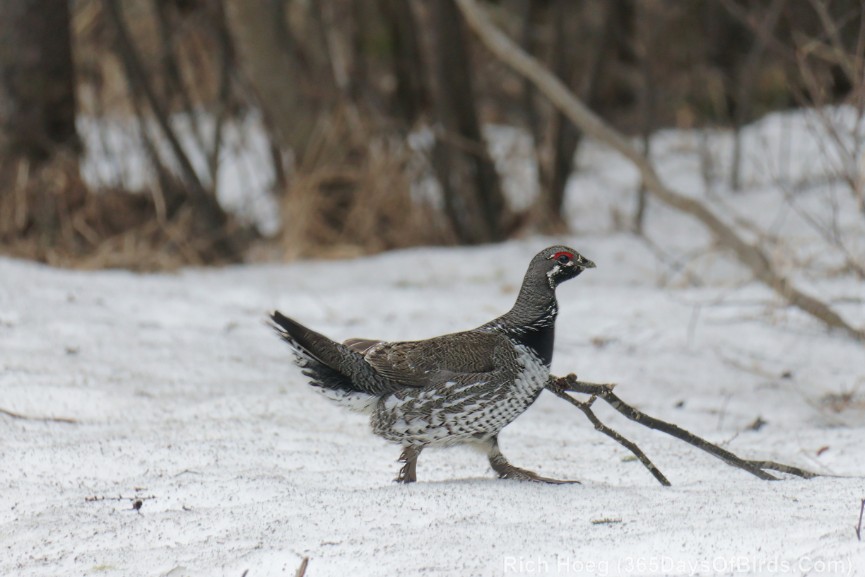 - North of Duluth and inland of Two Harbors, roads which were not plowed all winter are mostly snow free. However, shady “east-west” roads are much wetter than “north-south” roads given the amount of sun that reaches the roadbed. Given the amount of rain received over the past week you will find local flooding. The picture of the Spruce Grouse running across the snow was taken two days ago (April 24th) next to Stoney River Forest Road