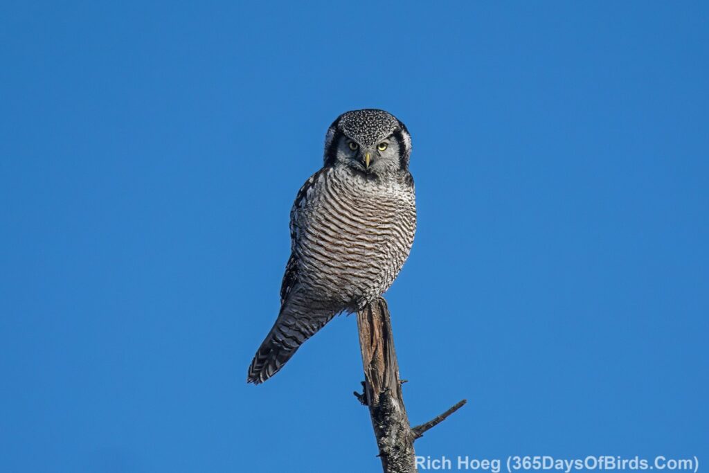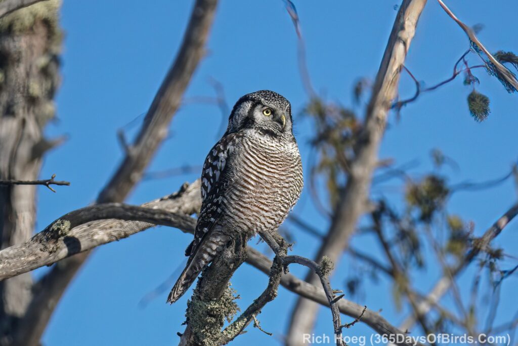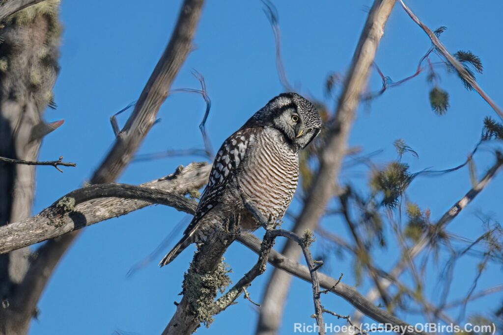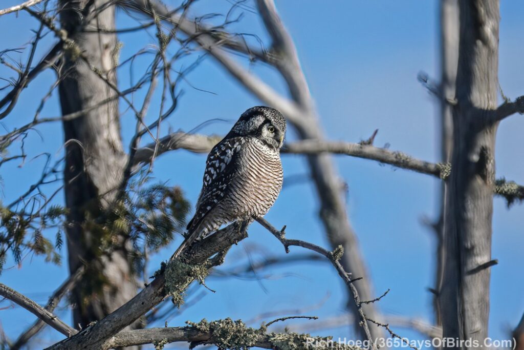 For this pine grosbeak I knew that songbirds often “grit up” on remote roads starting 30 to 40 minutes after sunrise. Thus, I like to slowly drive backroads at this time of day before stopping somewhere else for a birding hike.