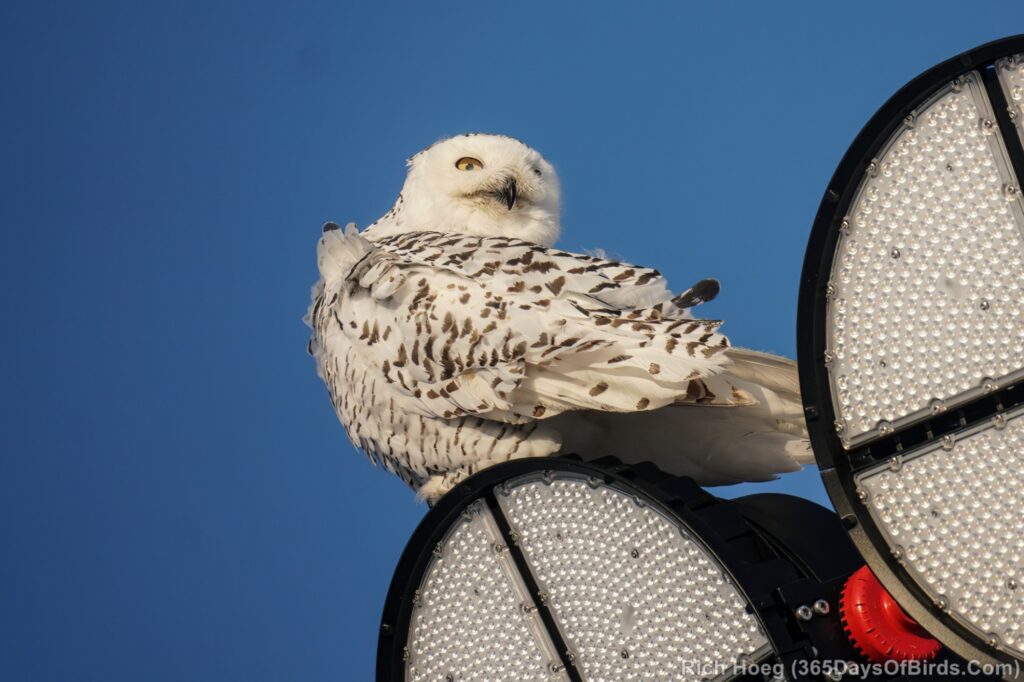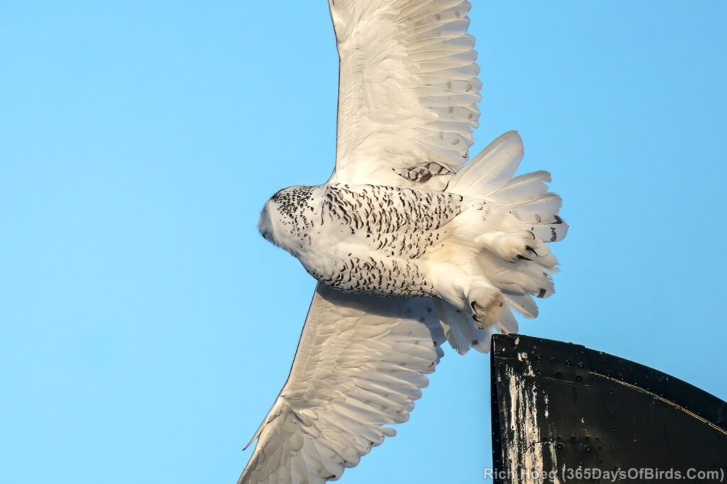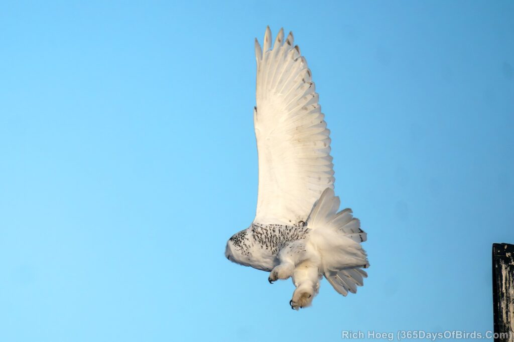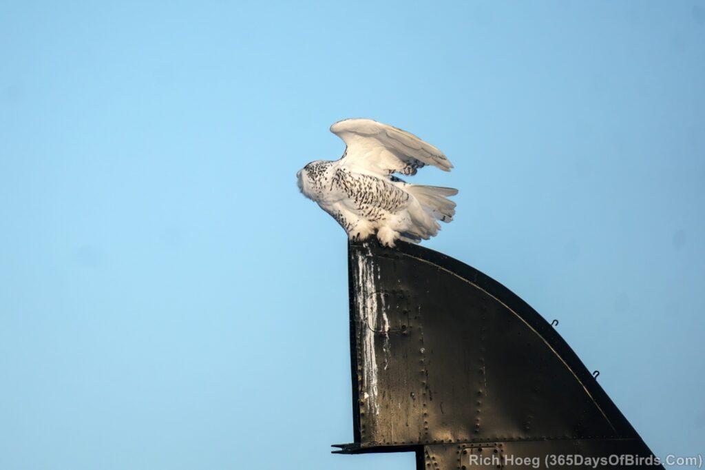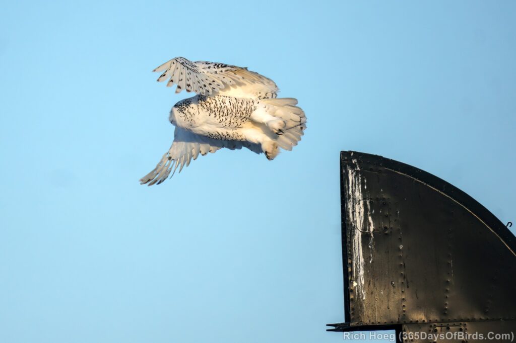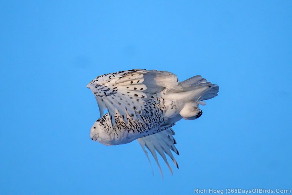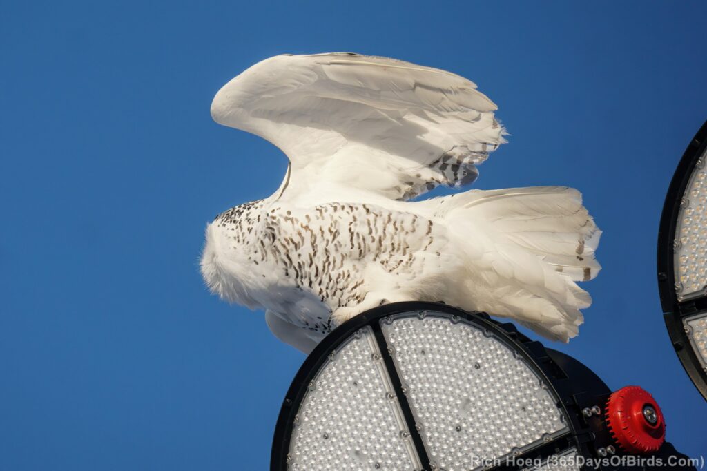 For the Snowy Owls, while the white birds may perch in plain sight during the day, these owls get much more active starting one hour before sunset, or recently about 3:30 pm. However given Snowys love wide open spaces, strong winds will shut down their hunting as the birds roost on the ground in protected spots awaiting calmer conditions. I lke to keep wind speeds below 15 mph.