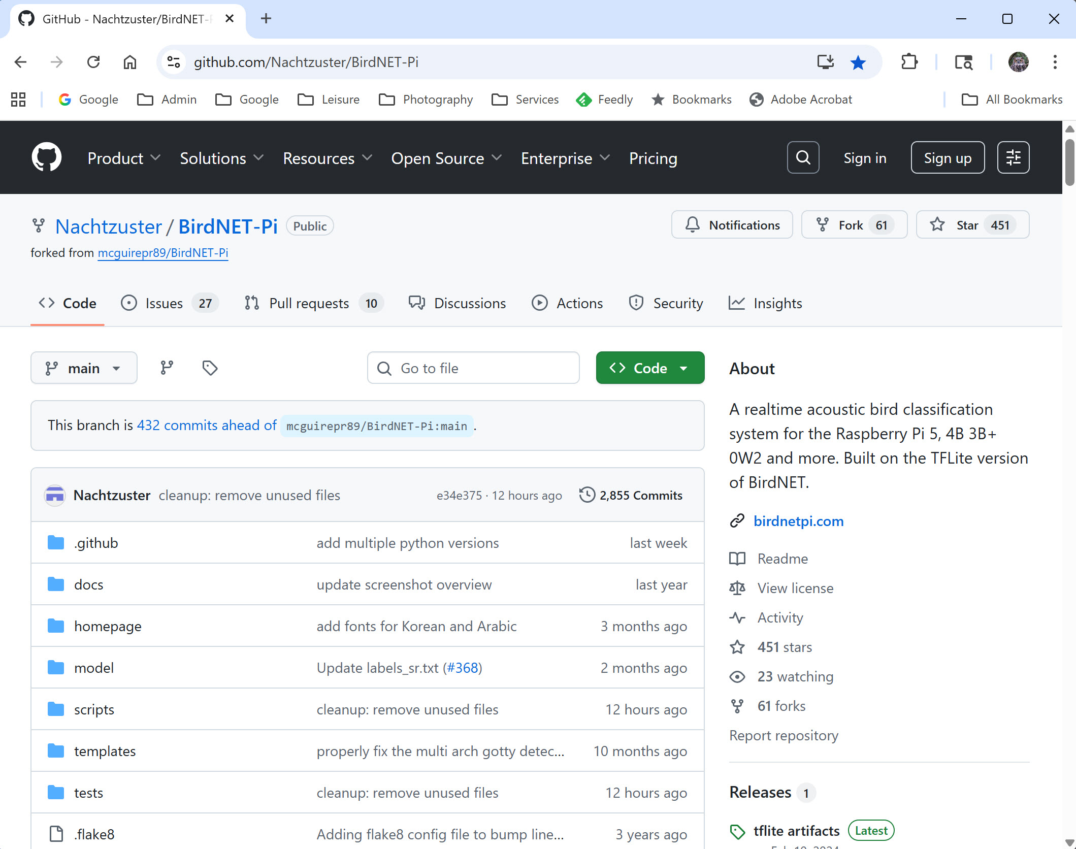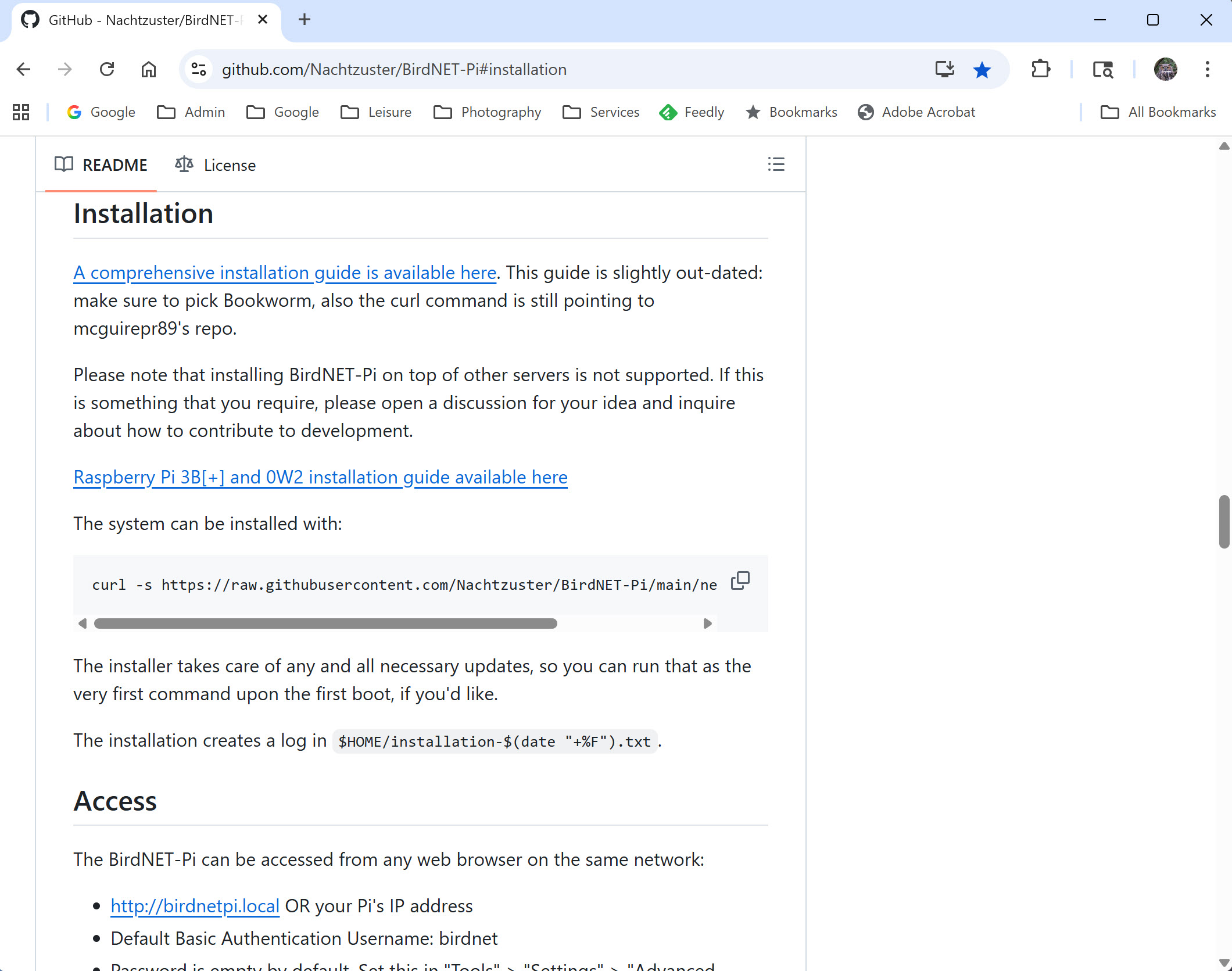 This installation is what we have been working towards, and it actually involves only one command! Once again browse to the BirdNET-Pi project site, Nachtzuster Version.