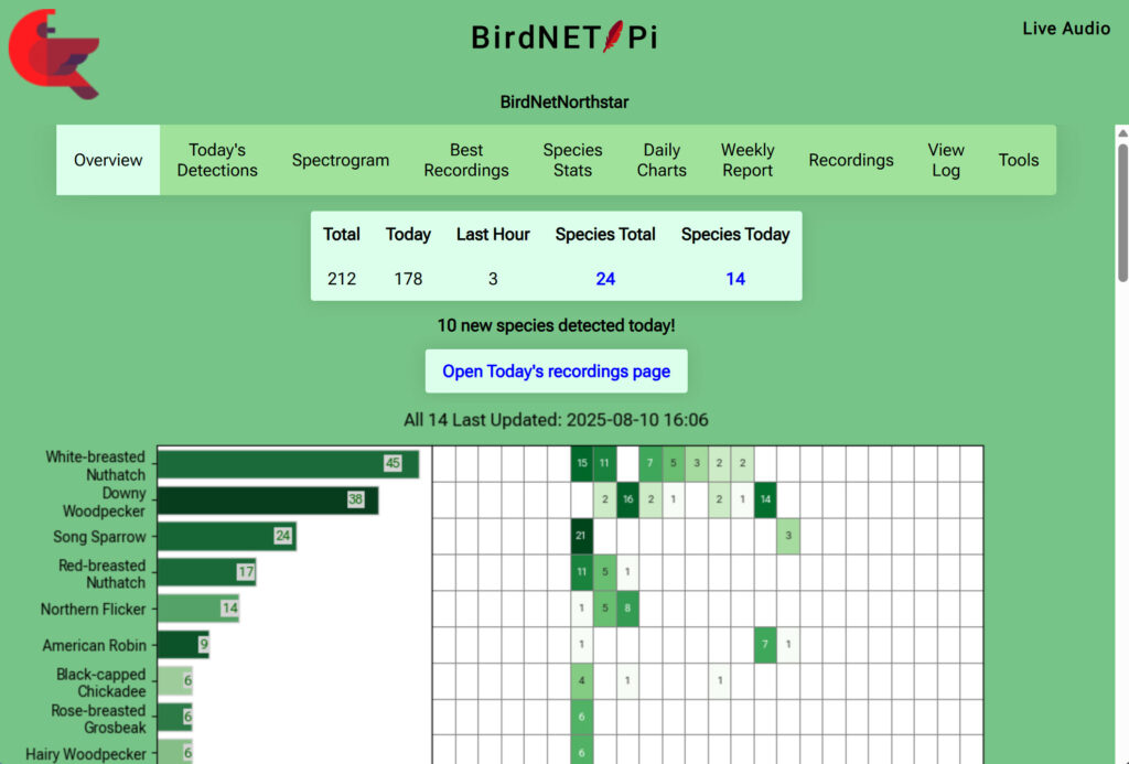 Before I launch into a discussion about BirdNet-Pi, you may wish to visit my prior blog post from 2023 where I review and discuss Haikubox. I still own a Haikubox and like same. Sometime this fall my Haikubox will be shifting north to my cabin 60 miles south of the Canadian border on Northstar Lake.