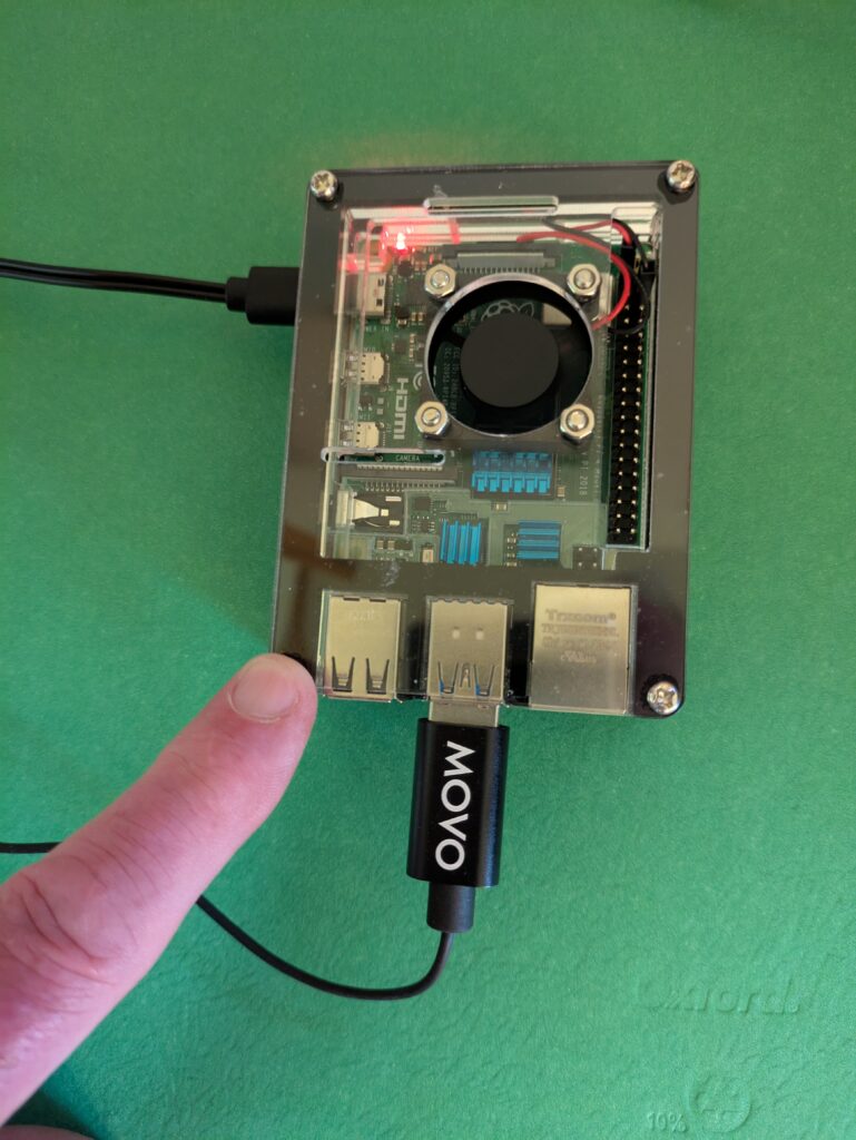 This is what my little BirdNET-Pi box looks like. My finger are included some photos to help folks better understand the size of my installation. It is small.