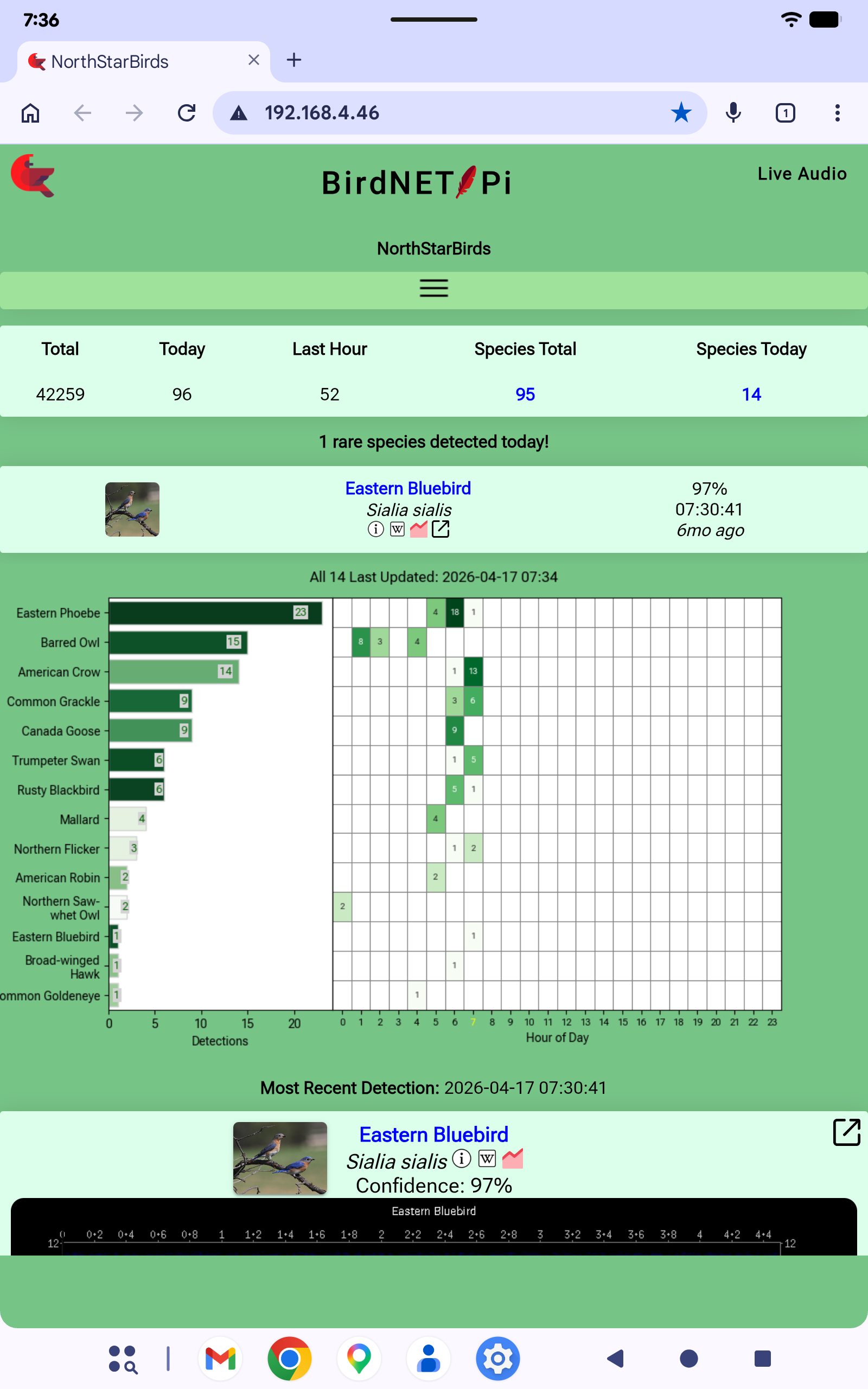 - Force the confidence for an I.D. to be 75% rather than the standard 70% used by the Cornell Merlin App and BirdNET-Pi. 2)