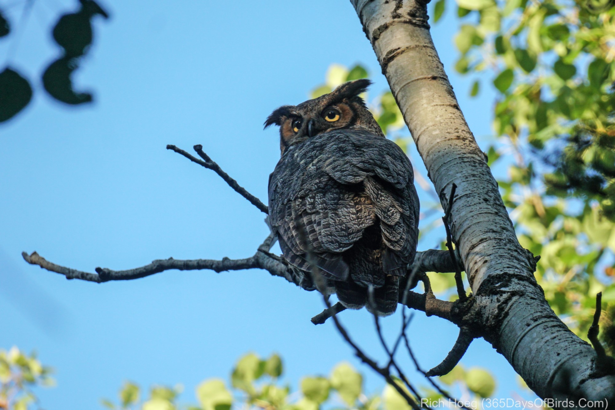The sun was just kissing the treetops about 6:00 am when I took these Great Horned Owl photographs.
