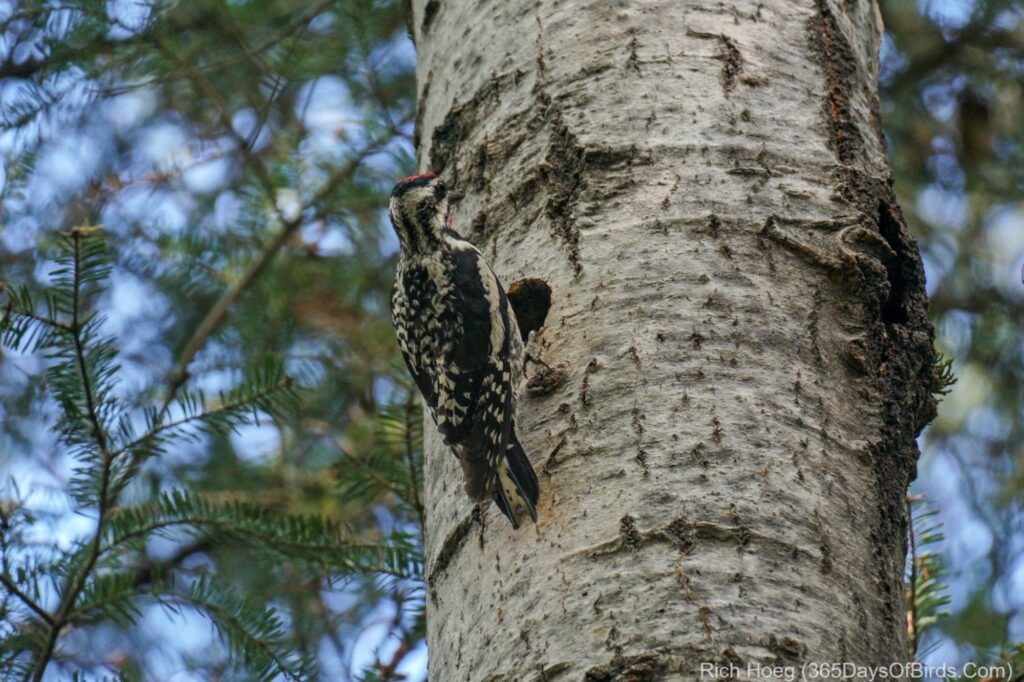 After my time with the owls, I continued my hike to a Yellow-Bellied Sapsucker nest hole. I discovered this nest hole six days ago when I was taking as evening hike. The youngsters should be sticking their heads out of the hole soon when demanding to be fed. When I first found the nest hole, even though I could hear the newly hatched chicks, it took me over 20 minutes to find the hole due to the echos in the forest.