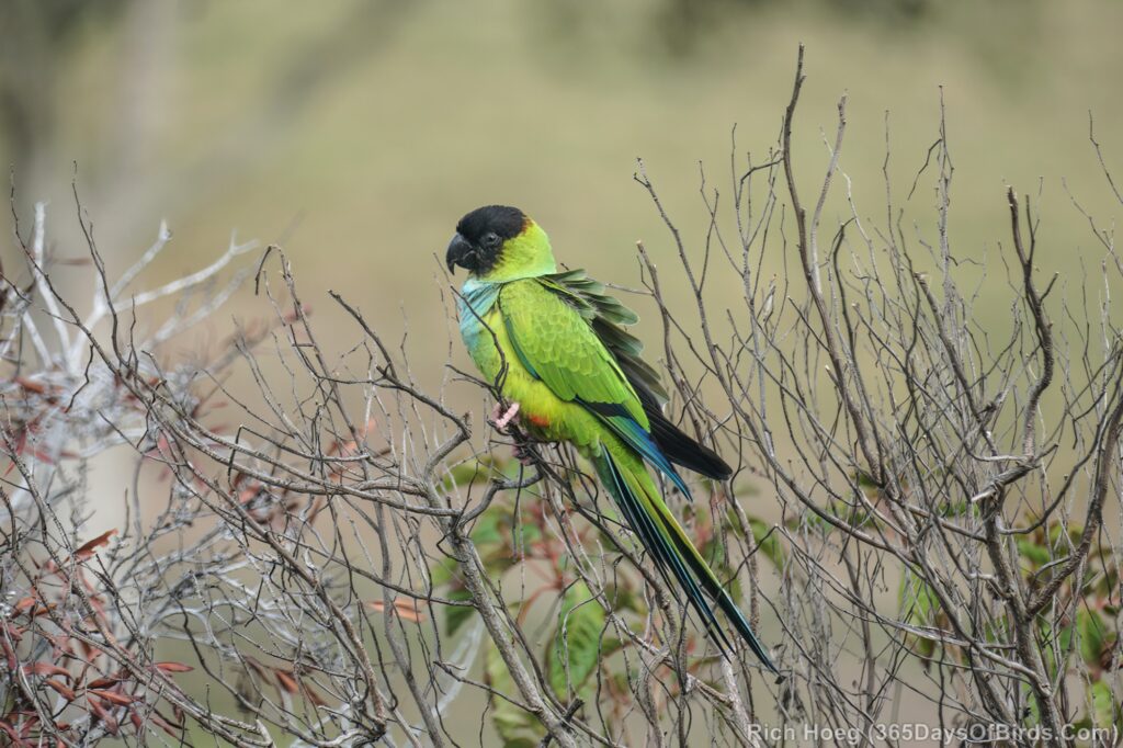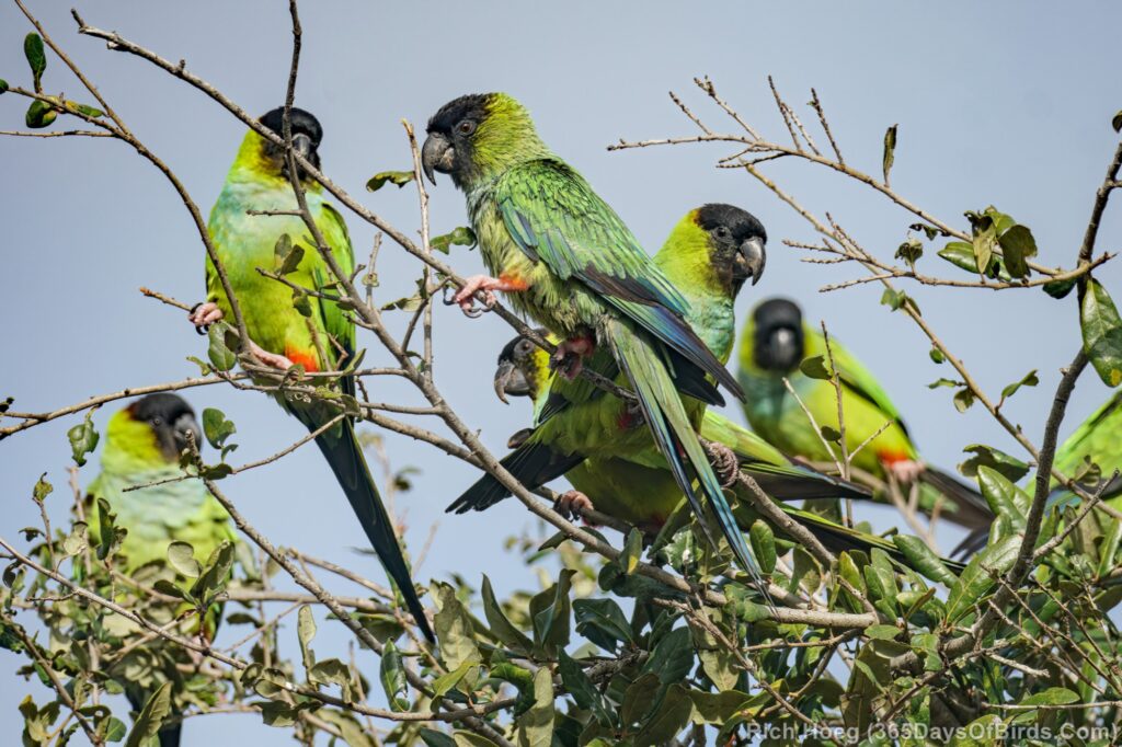 Jackpot! I saw hundreds of Nanday Parakeets! The Audubon Society has feeders which attract these birds to easily observable spots first thing in the morning. Should you decide to make the trip plan on getting there early. I arrived by 8:15 am. By 9:30 there was nary a Nanday Parakeet around, but prior … hundreds and hundreds till the morning feed was finished.
