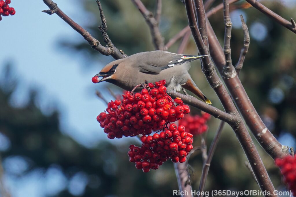 I know from personal knowledge that Grand Marais is loaded with Mountain Ash trees, and in November it can be a great spot to find these northern Boreal birds. My favorite haunts are Artist Point (forms the Grand Marais Harbor) and the local RV Campground (also abuts the harbor). Both locations are easy finds for migrating flocks of birds as they are right against the lake, and both locations have lots of Mountain Ash trees. I first hiked Artists Point, and it was obvious the trees had been mostly picked clean of their fruit. Thus, I headed over to the campground, and jackpot! Oh my did I see lots of Pine Grosbeaks and Bohemian Waxwings. I tend to like the berry trees very near the lake with available pine trees for cover for when the birds are not feeding. Anyhow, the trees in the campground are still loaded with fruit, and our feathered friends will certainly hand out there for a while.