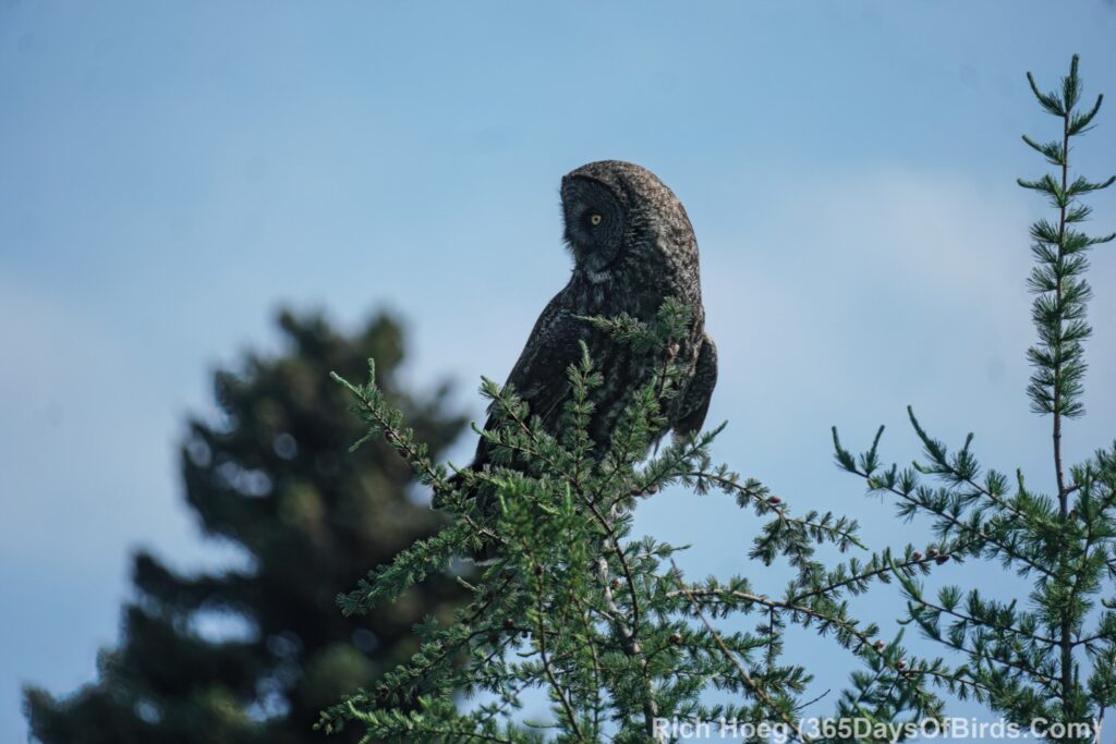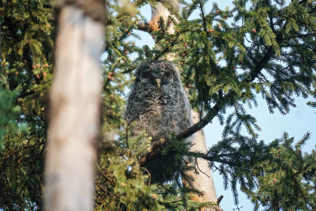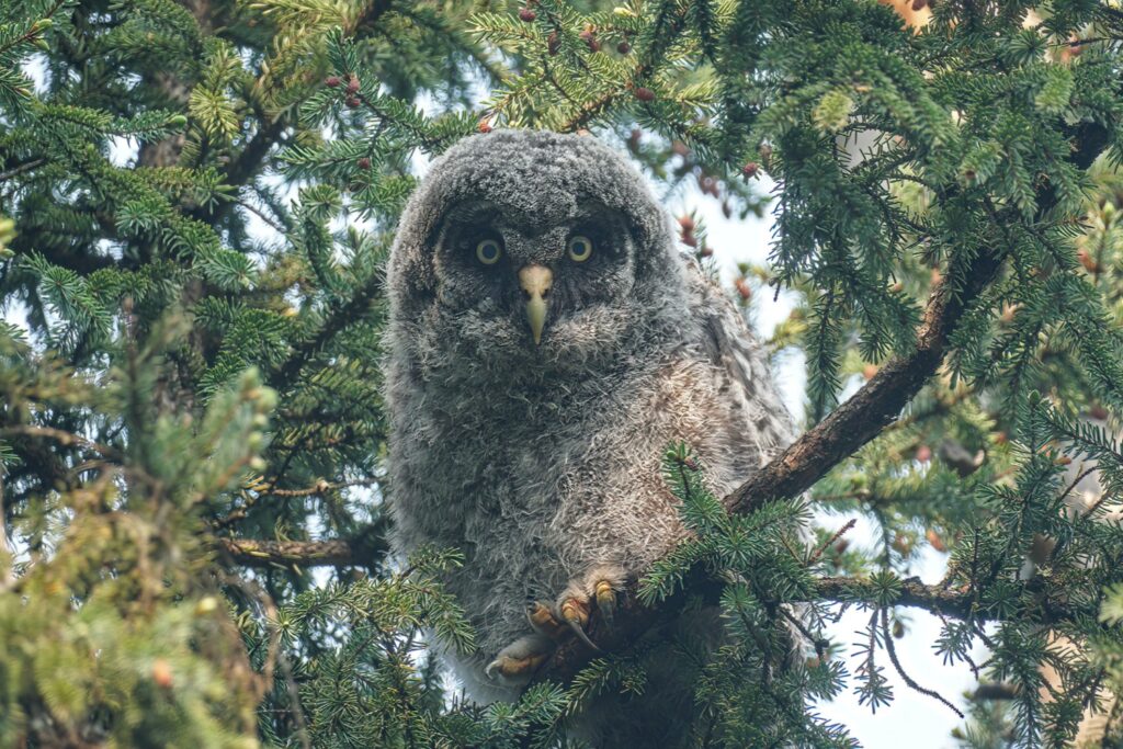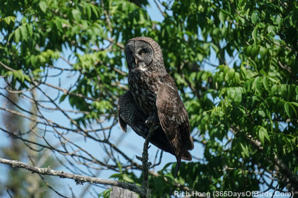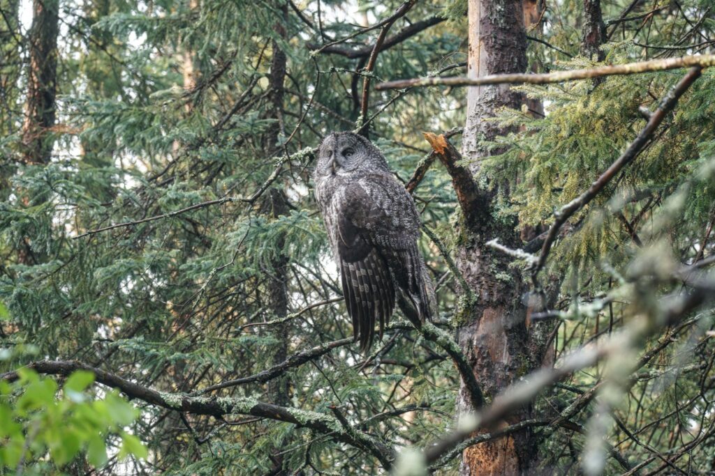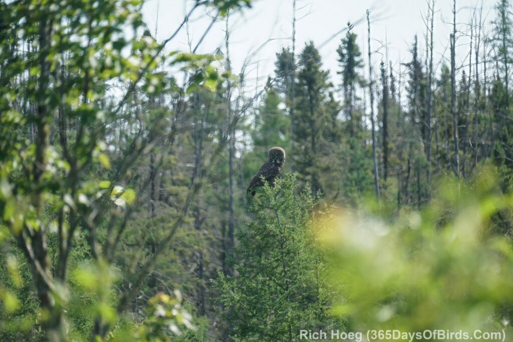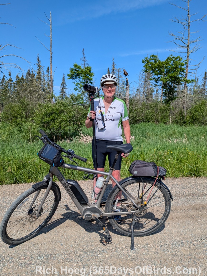 I have taken three amazing bicycle rides in the past week. I load my bike on the car’s rack, and drive somewhere deep into the Minnesota Boreal Forest Wilderness. Once I reach my desired starting point which is always near a bog, I then bike for about 8 miles on a dirt or gravel road. My last three rides have yielded sightings of a Black Bear, a Bull Moose, and yesterday morning a Great Gray Owl. My private STRAVA account indicated for yesterday’s owl ride I biked for one hour, and spent 52 minutes stationary with the owl!