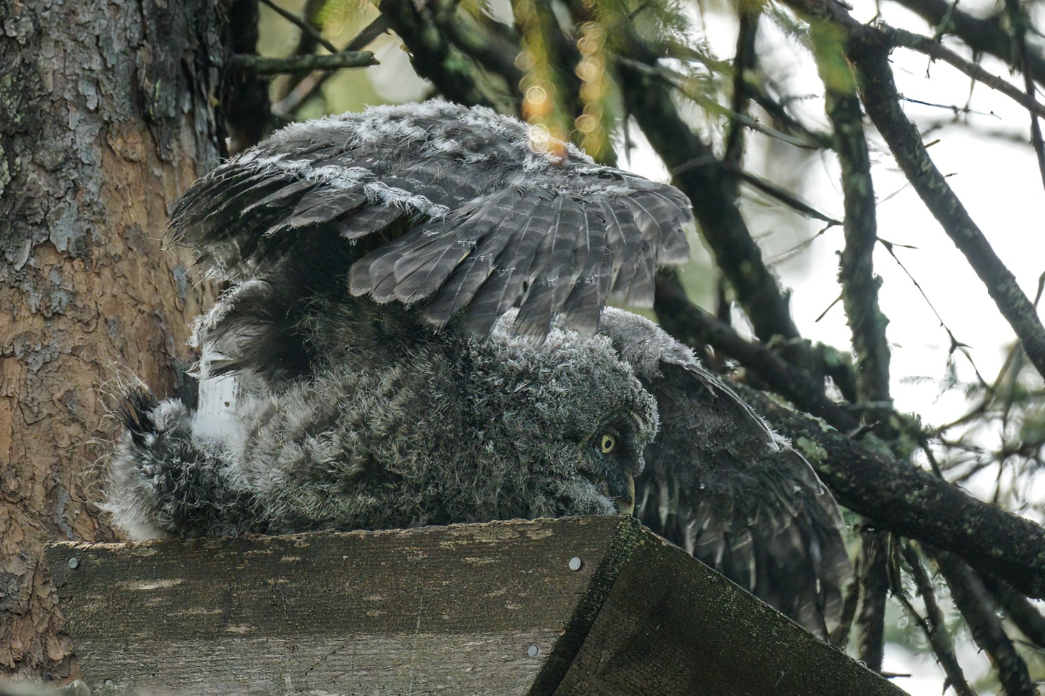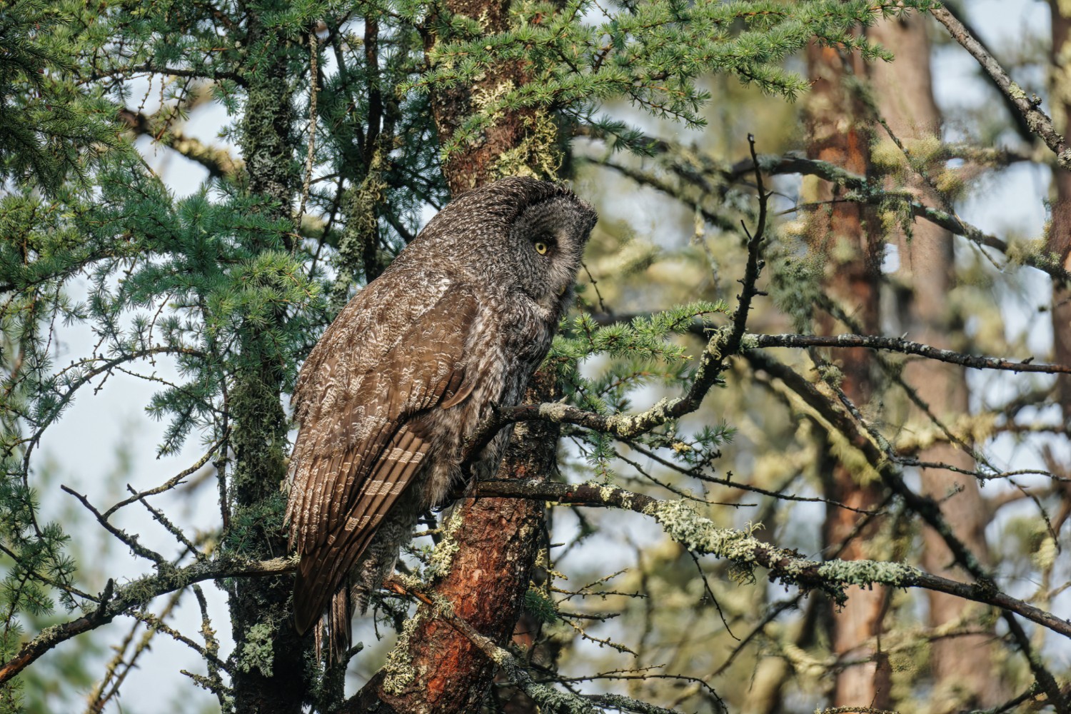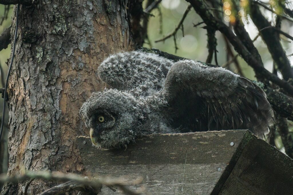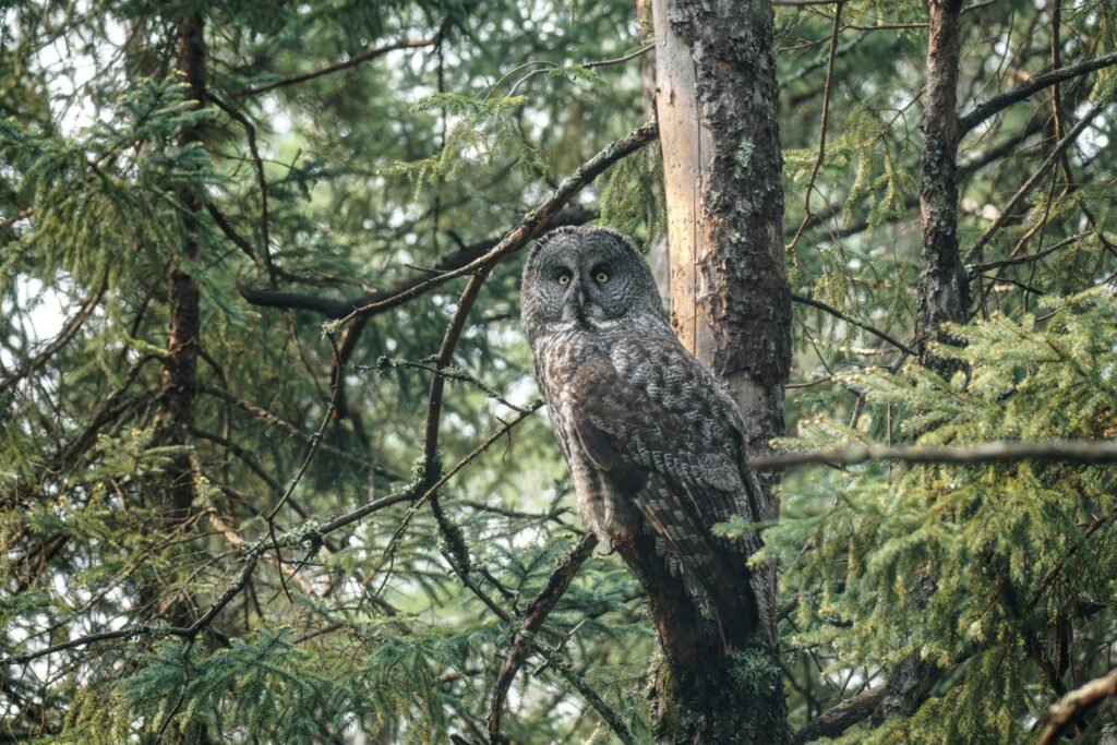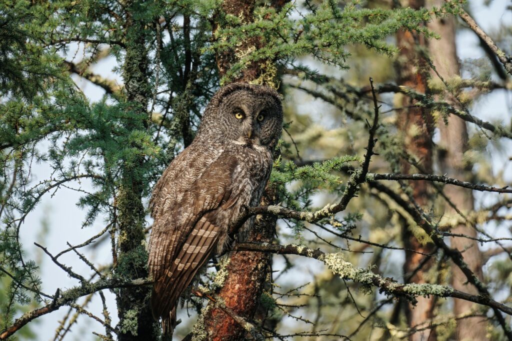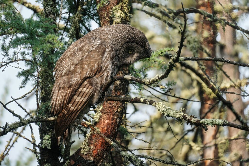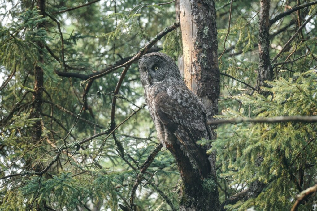 I have taken three amazing bicycle rides in the past week. I load my bike on the car’s rack, and drive somewhere deep into the Minnesota Boreal Forest Wilderness. Once I reach my desired starting point which is always near a bog, I then bike for about 8 miles on a dirt or gravel road. My last three rides have yielded sightings of a Black Bear, a Bull Moose, and yesterday morning a Great Gray Owl. My private STRAVA account indicated for yesterday’s owl ride I biked for one hour, and spent 52 minutes stationary with the owl!