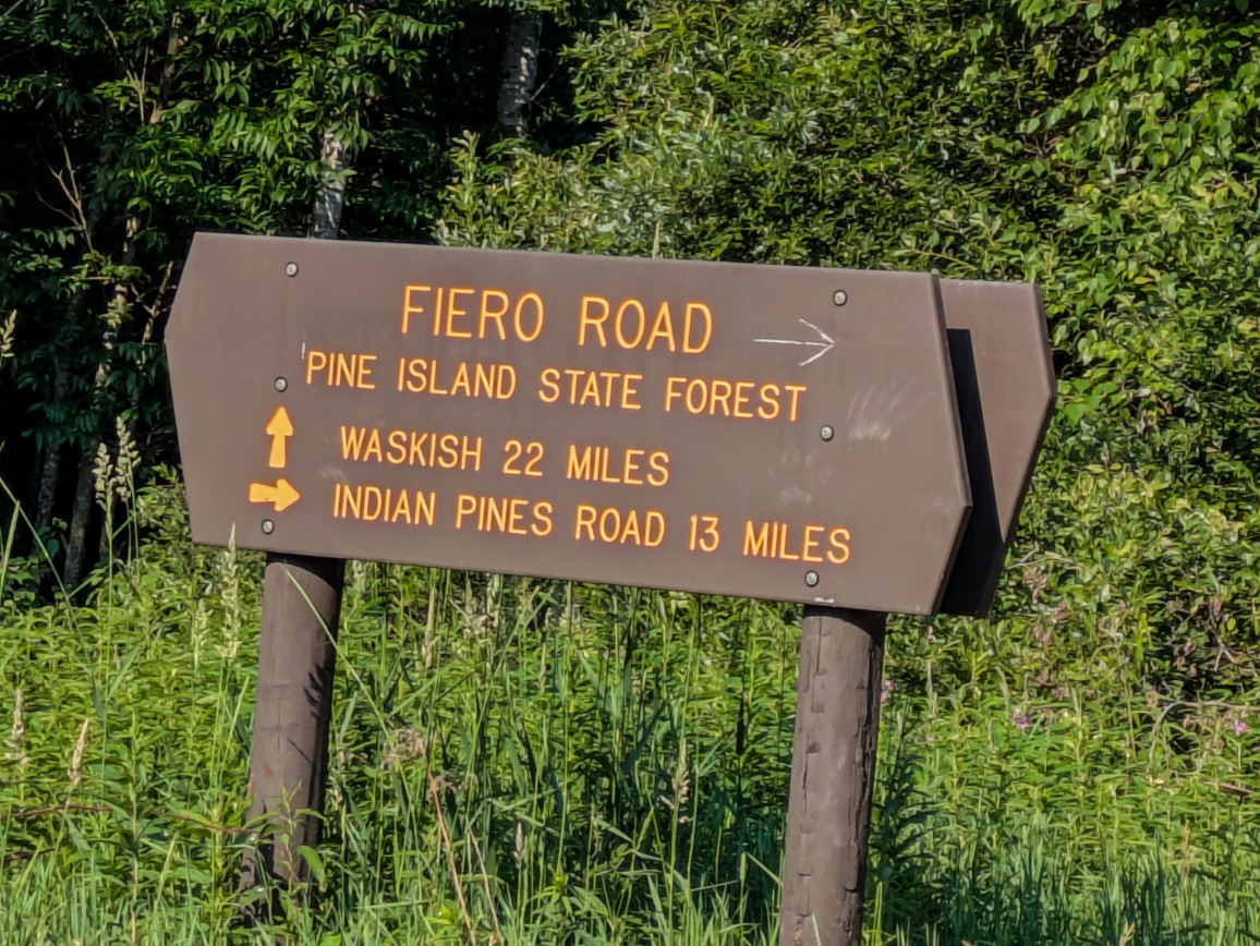 I have 8 videos which document this route. The videos were taken on the final day of June 2025. The route takes you along Toomey-Williams Forest Road, Pine Island State Forest Road (past Fiero Truck Trail) and finally to Waskish Road. Most of the habitat is boreal forest and bog. Immediately next to Toomey Williams Forest Road there will be lots of bogs, and there is a huge stretch of bog about seven miles past the intersection of Pine Island State Forest Road and the Fiero Truck Trail. Your drive will end driving through rice farms as you approach Waskish. The topography is very flat … thus the bogs.