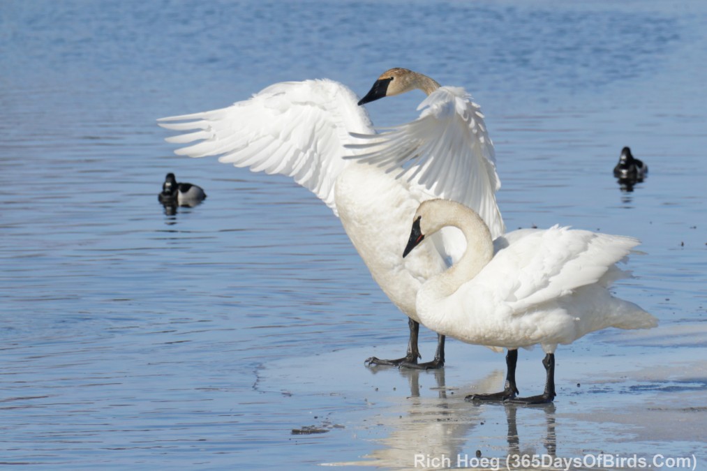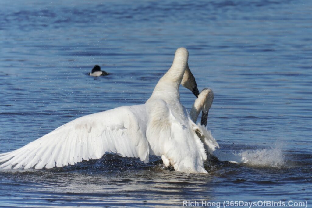 One of the species in greatest abundance were Trumpeter Swans, and love was in the air (or at least on the water)!